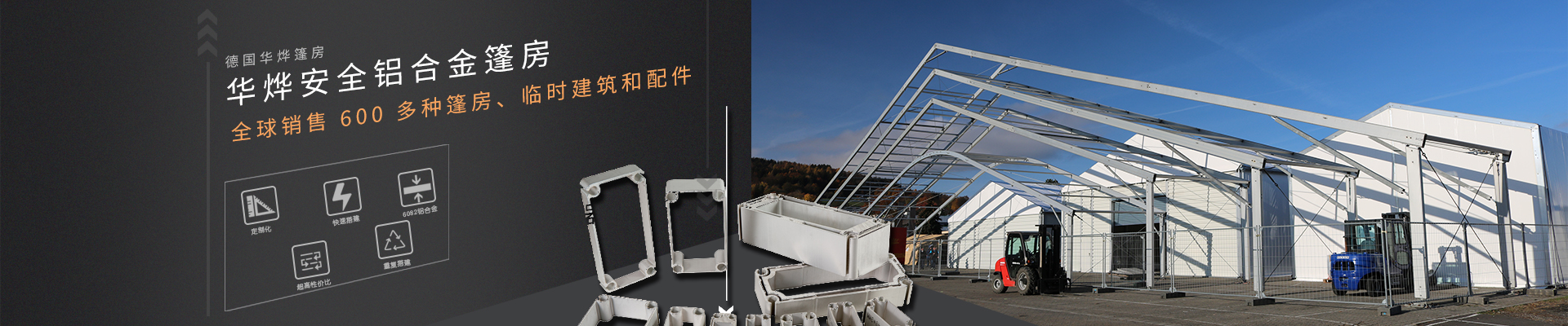 篷房主要有三大部分,鋁合金框架、連接鋼部件、各種材質的頂篷及墻體。其中鋁合金與連接部件組成的框